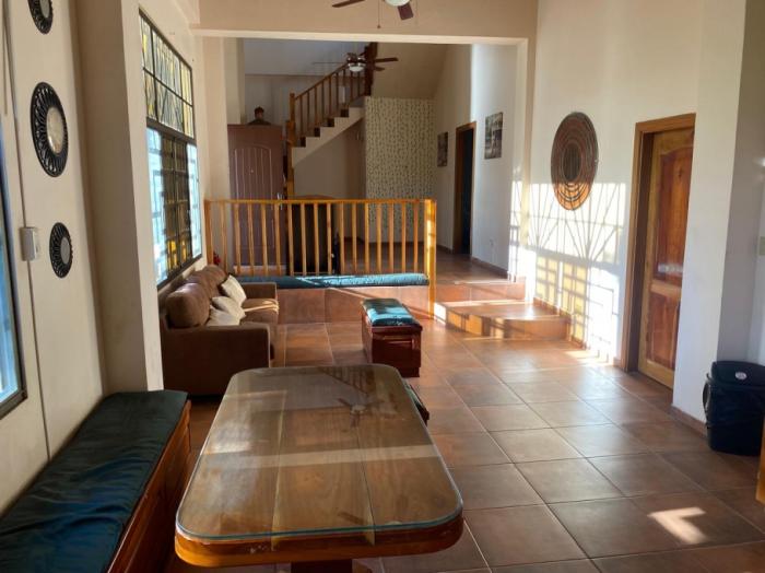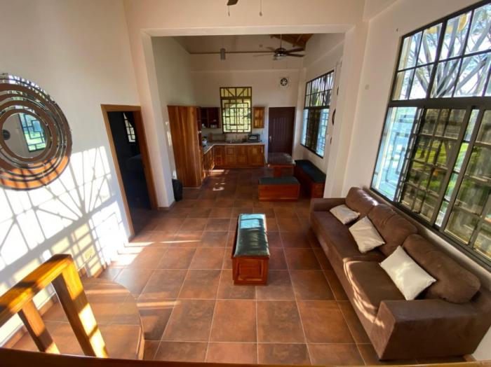 la casa principal tiene aproximadamente 800 m² de construcción y se entrega completamente amoblada. cuenta con tres recámaras y cuatro baños distribuidos en dos niveles, con una hermosa y amplia vista al océano desde varias áreas de la vivienda. tres balcones y tres terrazas brindan amplios espacios exteriores ideales para disfrutar de las vistas al mar, los atardeceres y la brisa costera.
