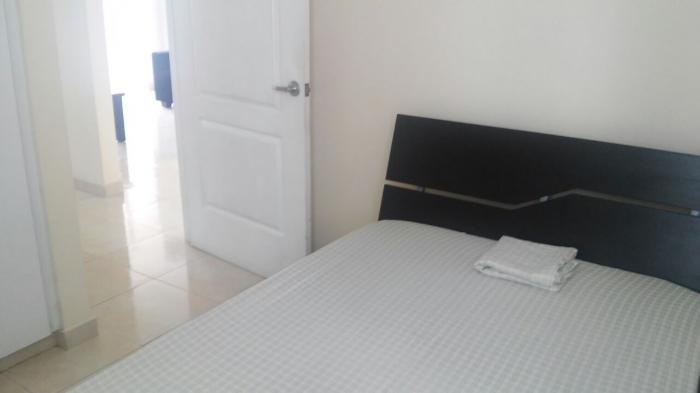 apartamento amoblado, decoración moderna y línea blanca.
