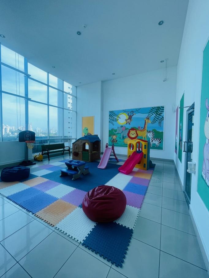 el edificio cuenta con ,múltiples amenidades tales como seguridad 24/7, elegante lobby, area social con piscina de adultos y niños, terrazas techadas, salon de juego de niños, salon de fiestas, gimnasio.