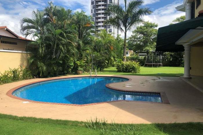 Alquiler de casa en panamaInfoalquiler de casa en pleno centro de la ciudadterreno: 1840 m2construcción: 530 m2consta de:7 estacionamientos2 puertas cocheras2 cbecasita jardinero con cuarto y bañorecibidorsala - comedorden4 habitaciones con cada una su baño1 sala de juegopiscina y amplio patiomuro perimetralalquiler: $5,500.00venta: $ 1,350,000.00