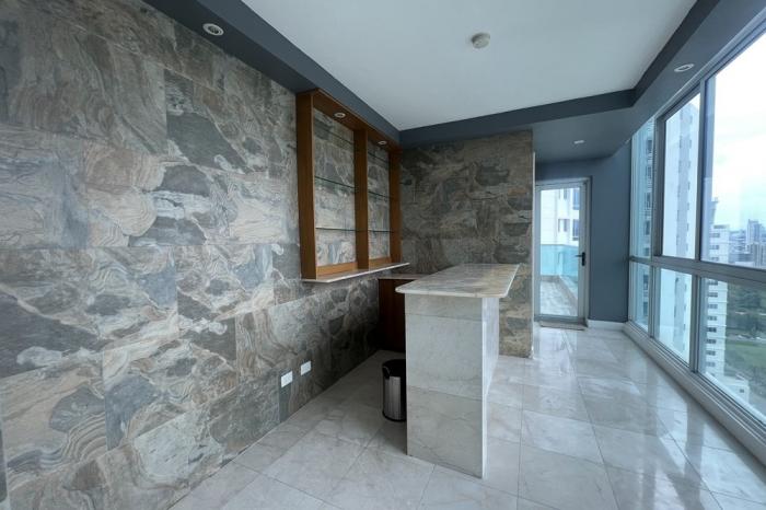 Alquiler de penthouse en ph ocean two ? costa del esteUbicado en la avenida paseo del mar, este exclusivo penthouse de dos niveles en ph ocean two ofrece 445 m² de lujo y confort, con impresionantes vistas panorámicas de la bahía y la ciudad.características del apartamento:planta baja (312 m²):vestíbulo de entrada.servicio sanitario de visitas.elegante antesala con acceso a dos escaleras internas.amplio salón principal con doble altura.comedor separado.balcón con vista panorámica.moderna cocina con desayunador.recámara principal con vestidor y baño privado con tina.dos recámaras adicionales, cada una con vestidor y baño privado.cuarta recámara.lavandería.cuarto y baño de servicio.dos depósitos para almacenamiento.planta alta (133 m²):den ideal para entretenimiento.bar y área social.terraza abierta con barbacoa, perfecta para reuniones.estudio y área de juegos.quinta recámara con cocineta y balcón privado.aire acondicionado central y splits en todo el apartamento.tres estacionamientos asignados.descripción del ph ocean two:el edificio ofrece una amplia gama de amenidades de lujo:seguridad 24/7 con garita de control y cámaras de vigilancia.recepción con acceso controlado y sala de espera.tres elevadores principales y uno de servicio.canchas de racketball, squash y mini golf.piscinas para adultos y niños.salones de reuniones, área de juegos para niños y terrazas con barbacoas.sauna, jardines, estacionamiento de visitas, plantas eléctricas y tanques de reserva de agua.el penthouse está ubicado en costa del este, una de las zonas más exclusivas y modernas de ciudad de panamá, conocida por su excelente infraestructura. ofrece:acceso directo a la avenida corredor sur, conectando fácilmente con el centro y el aeropuerto internacional de tocumen.cercanía a comercios, restaurantes, centros comerciales y bancos.parques, áreas de entretenimiento y un paseo marítimo ideal para actividades al aire libre.precio de alquiler:$4,500 mensualesesta propiedad única ofrece una combinación de elegancia, confort y estilo en una de las áreas más deseadas de panamá. ¡no pierdas la oportunidad de vivir en este espectacular penthouse en ph ocean two!