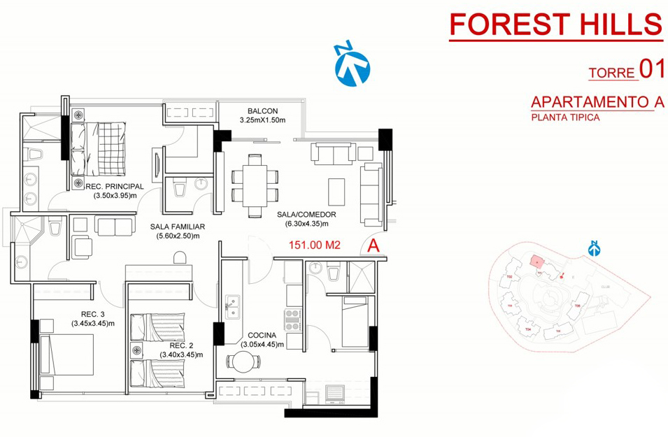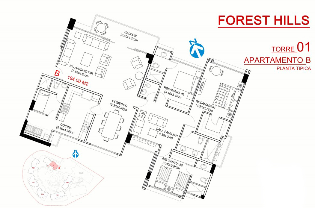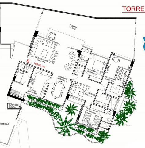 Apartamento en embassy village de 143.24 m2 con 3 habitaciones, 2 baños, 2 estacionamientos, sala ...