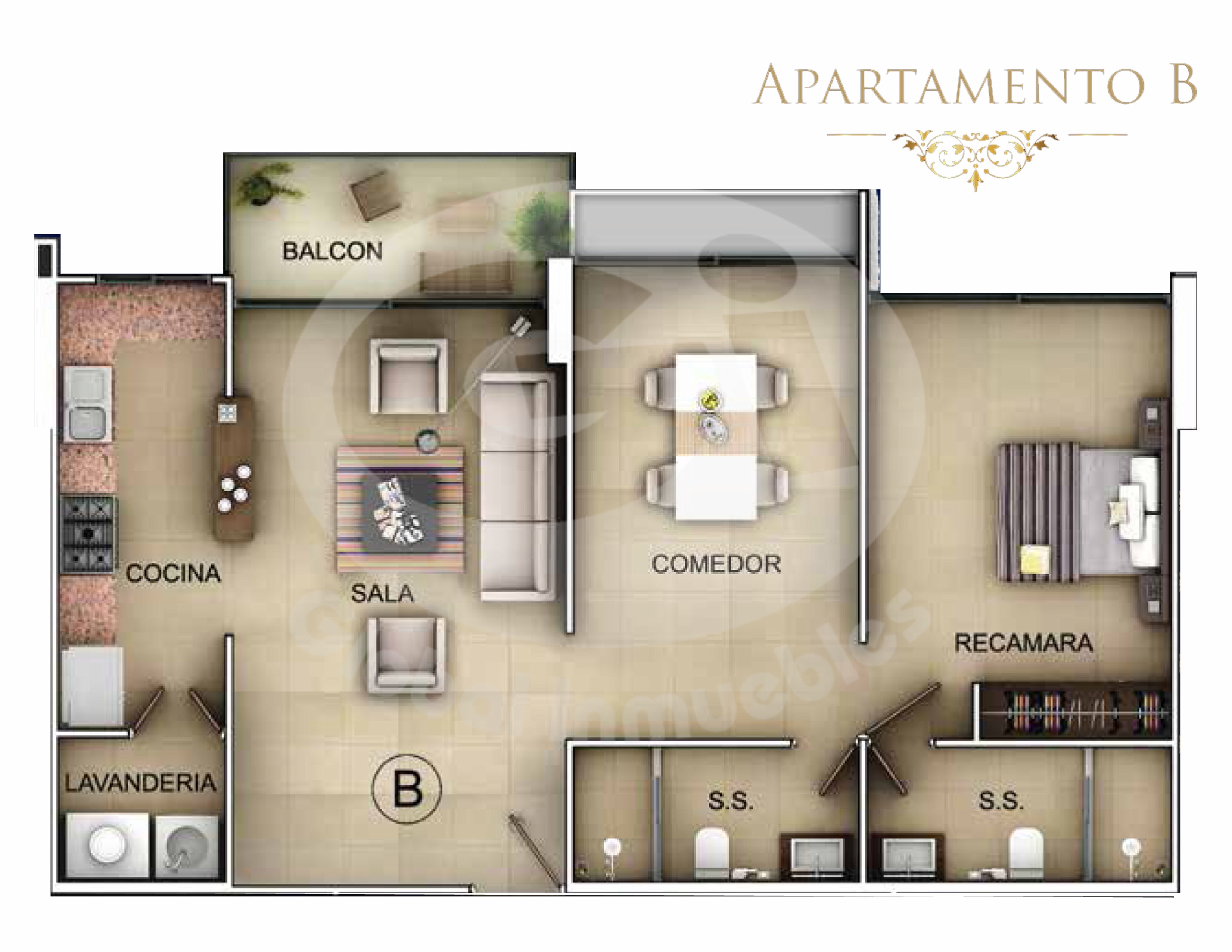 Apartamento: 96m2, sala, balcón, comedor (convertible a hab. adicional), cocina cerrada, 1 habitación con baño completo con closet lineal + 1 hab opcional, 3 baños, 1 deposito, finos