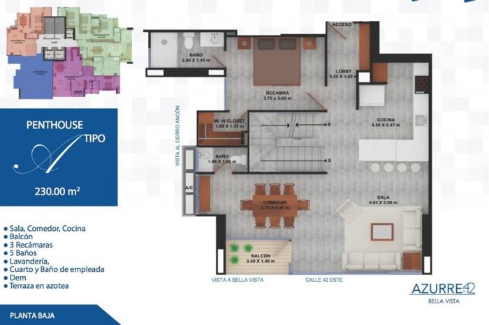 Apartamento en venta en azurre ph 42, panamá¡conoce azurre 42!te presentamos azurre 42, un exclusivo proyecto en construcción de 29 pisos, diseñado para ofrecerte el estilo de vida que siempre has soñado.¿por qué elegir azurre 42?amenidades de primer nivel: disfruta de una experiencia de lujo con tres ascensores, áreas sociales que incluyen piscinas para adultos y niños, un gimnasio completamente equipado, y un salón de juegos y eventos. y para los momentos especiales, el rooftop en el nivel 28 te ofrece un bar, una piscina y una terraza abierta con vistas impresionantes.interiores de alta calidad: cada detalle en azurre 42 está pensado para tu comodidad. cocinas y baños con muebles resistentes a la humedad, grifos alemanes de primera calidad, y paredes revestidas en cerámica. además, disfrutarás de pisos de porcelanato español, paredes pintadas con la prestigiosa pintura benjamin moore, y techos con aislamiento térmico y acústico para un confort superior. las puertas, con su imponente altura de 2,40 metros, añaden un toque de elegancia y amplitud a cada espacio.cuota de mantenimiento: solo $2.00 usd por metro cuadrado, una inversión que asegura la calidad y el mantenimiento de todas estas amenidades.entrega: fecha estimada de finalización en agosto de 2024, con entrega en un plazo de 3 a 4 meses tras la obtención del permiso de ocupación.no pierdas la oportunidad de ser parte de azurre 42, un proyecto que redefine el concepto de vivir bien. ¡contáctanos hoy mismo para más información!