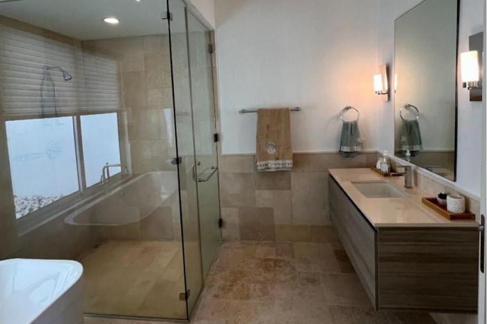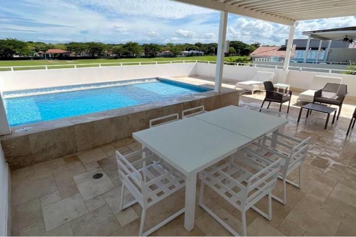 Casa de playa en buenaventura, antónBuenaventura: complejo de lujo de playa, con hotel boutique de marriott, con 3 beach clubs, mas de 10 restaurantes, un-deli, cancha de pádel, de tenis, de basketball, futbol, caballos para montar, y la cancha mas prestigiosa del golf en panamá. inmueble: cuenta con 4 cuartos (en piso de abajo) + cuarto y baño de servicio cada uno con su baño. cuenta con 2 piscinas (1 privada abajo y otra arriba con excelente vista).área de sala incorporada con área de comedor y concepto cocina abierta, con finos acabados. terraza con gran vista frontal al lago y cancha de golf, con 2 piscinas, con vista impresionante a la playa, poca distancia caminando a la playa. de 4 cuartos + cuarto de servicio cada uno con su baño. impresionantes acabados de lujo, con muebles y electrodomésticos de ultima gama. casa muy amplia de 753m2 de terreno. con deck increíble y vista a lago y campo de golf.cuarto de servicio + área de lavandería con mucho amplitud de igual manera. alquiler $6,000