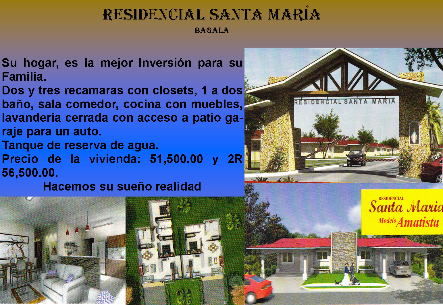Bonita casa de: 67m2, 2 habitaciones y 1 baño. hacemos su sueÑo realidad, residencial santa maria tiene vivienda desde b/60,700.00 y 68,500.00 casa amplias son duplex, solo lo que lo une la lavande