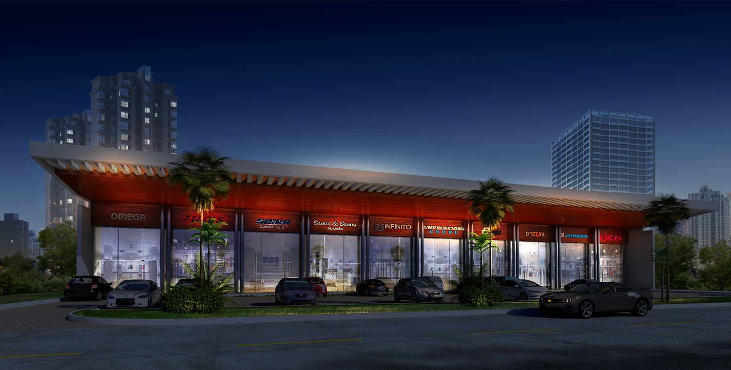 Commercial plaza of 10 exclusive commercial spaces with many parking lots and large front size. 100 commercial spaces
