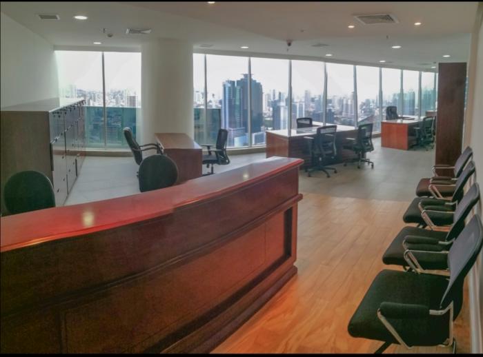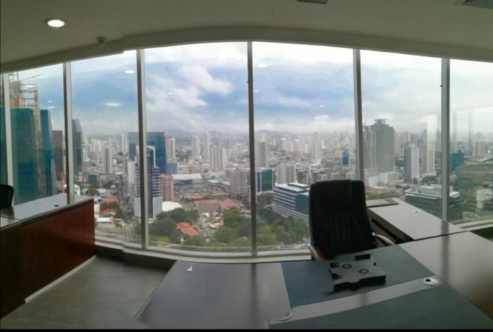 Vendo elegante oficina amoblada en el famoso tornillo revolution tower calle 50 área bancaria. 2 estacionamientos, balcón, vista panoramica, cocina y 2 baños.