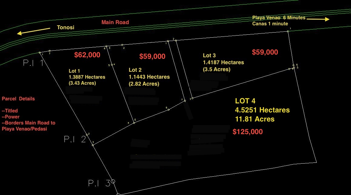 Se vende 3 parcelas desde $59,000 hasta $62,000. y una parcela mas grande para $125,000 1) 1.3887 hectáreas (3.43 acres) $62,000 2) 1.1442 hectáreas (2.82 acres) $59,000 3) 1.4187 hectár