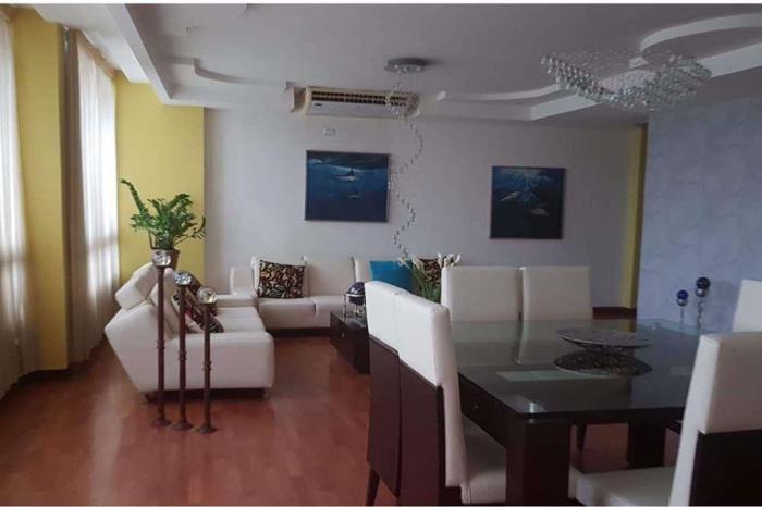 Penthouse en venta en el ph vista obarrioUbicado en una zona prestigiosa de la ciudad, la gran cantidad de servicios de calidad que se encuentran a disposición del residente también hacen de obarrio un lugar muy atractivo; con el centro comercial de lujo soho mall que ofrece una sala de cine vip, restaurantes, gimnasio y tiendas de renombre internacional perfecto para pasar un día de shopping, el penthouse cuenta con 2 plantas, en la parte baja se encuentra la sala comedor, cocina, desayunador, pequeño cuarto de estudio, cuarto de servicio y el área de lavandería. el penthouse tiene dos recámaras completas con baño y walk in closet, el cuarto principal cuenta con lavamanos doble, ducha, jacuzzi, walk in closet, cuarto de masajes, balcón. su medida es de 438m2, con 3 estacionamientos y 2 depósitos.el edificio cuenta con: dos elevadores nuevos y conserje, área social, piscina, gimnasio, baño turco y 2 saunas, además tiene un salón de eventos y un área de bbq, parque para niños, cancha de futbol, juegos de mesa y billar. tiene 2 garitas y dos salidas, una por calle 50 y la otra por calle 59 que permite salir a vía israel.