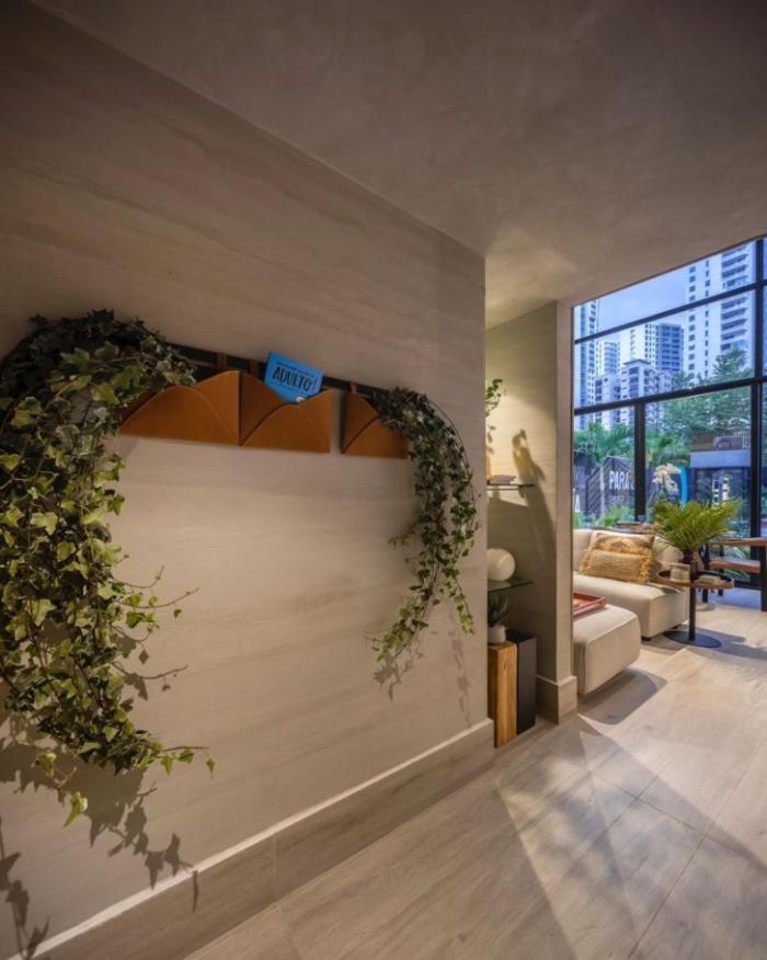 ? lobby - diseñado bajo el concepto tierra, donde se hace uso de materiales naturales que brindan una vibra acogedora desde el momento