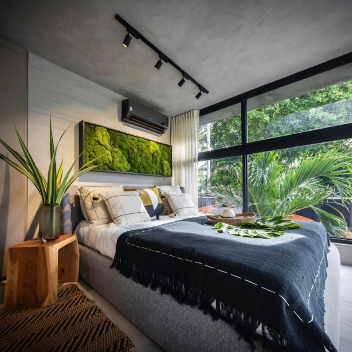 ? selva - en el último piso se ha recreado un entorno orgánico de 400 m² inspirado en la selva tropical de panamá. en la misma, se integran de forma natural vegetación variada, agua, rocas y pavimento. este elemento dentro del proyecto aporta una estética única cuyo propósito principal es acentuar la conexión entre el residente y la naturaleza.