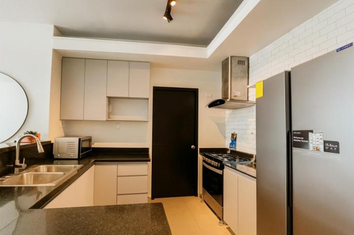 cocina totalmente nueva, equipada con electrodomésticos a estrenar.