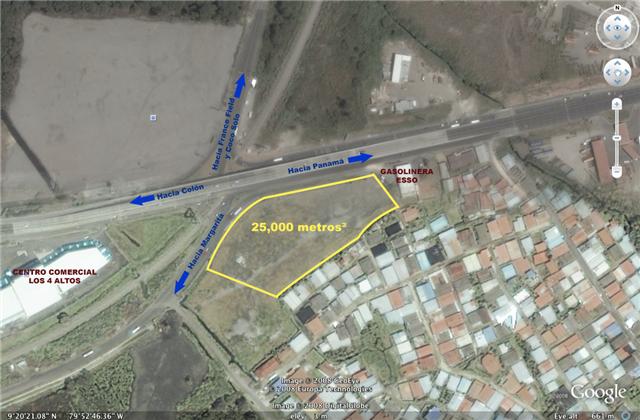En los cuatro altos de colon a orilla de careterra! cuenta con 25,000 mts2 a $150.00 el mts2. titulado acceso a agua potable acceso a electricidad para mayor informacio