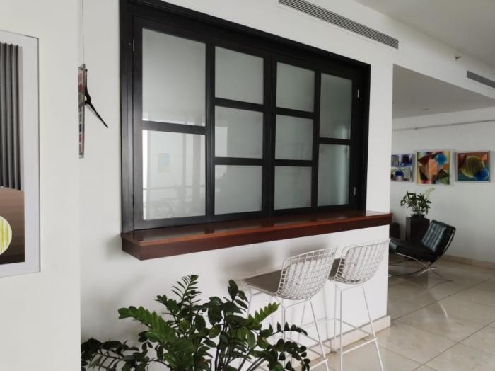 sala-comedor de concepto abierto con espectaculares ventanales