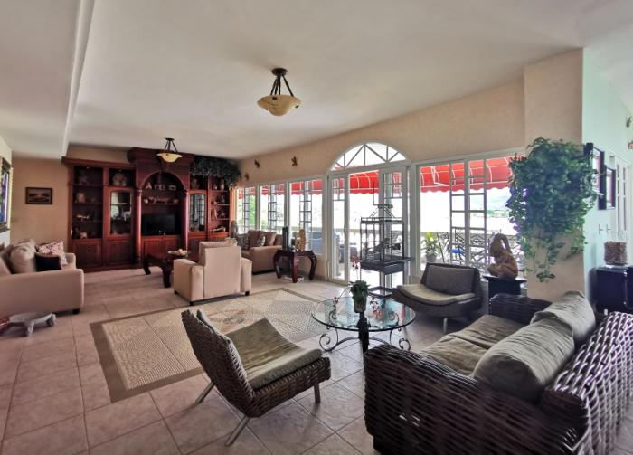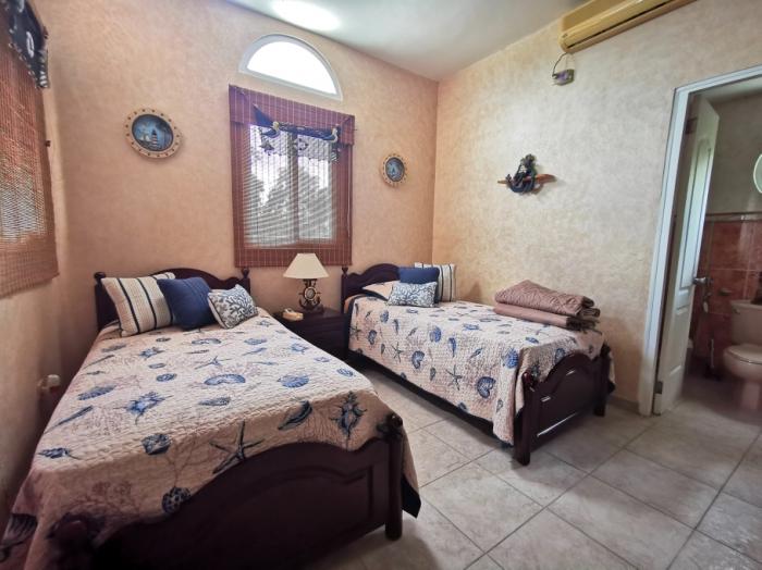 la propiedad cuenta con 4 amplias recámaras con baño privado, una recámara adicional de invitados o de servicio, y una sala-comedor de concepto abierto. la cocina está completamente equipada, con muebles de madera maciza de nazareno y sobres de granito. todos los espacios tienen vista al mar, incluyendo la enorme terraza con espectaculares vistas de la costa.