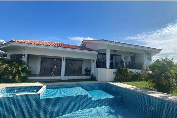 Venta de casa con terreno en san carlos, panamá oesteEncantadora casa en san carlos a solo 15 minutos de coronado, disfruta de una impresionante panorámica que abraza tu hogar brindándote vistas espectaculares, un refugio sereno y acogedor que combina la comodidad moderna con la belleza natural de tu entorno.cuenta con un hermoso jardín y una zona con grande piscina y jacuzzi con un especial y cómodo gazebo, los arboles frutales que lo rodean hacen de este lugar un paraíso pleno de posibilidades.cuenta con:3 recámaras4 bañosden amplio salón y comedorcocina grande e iluminada