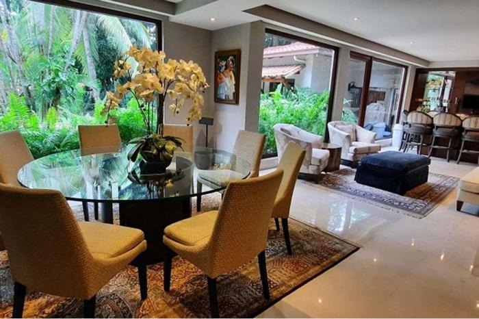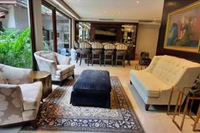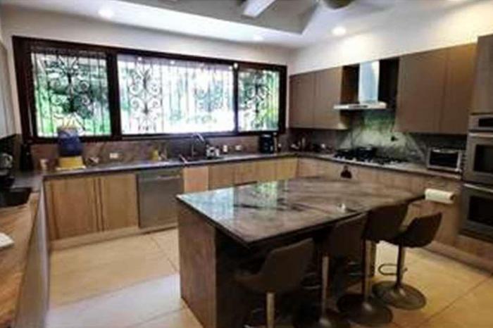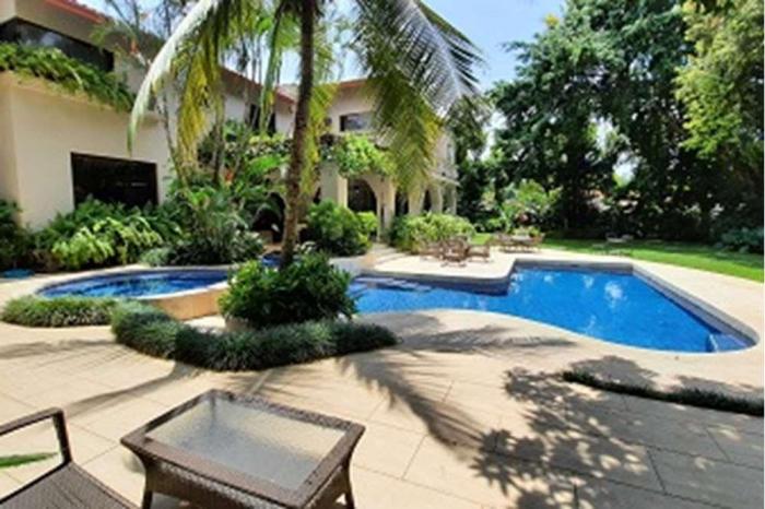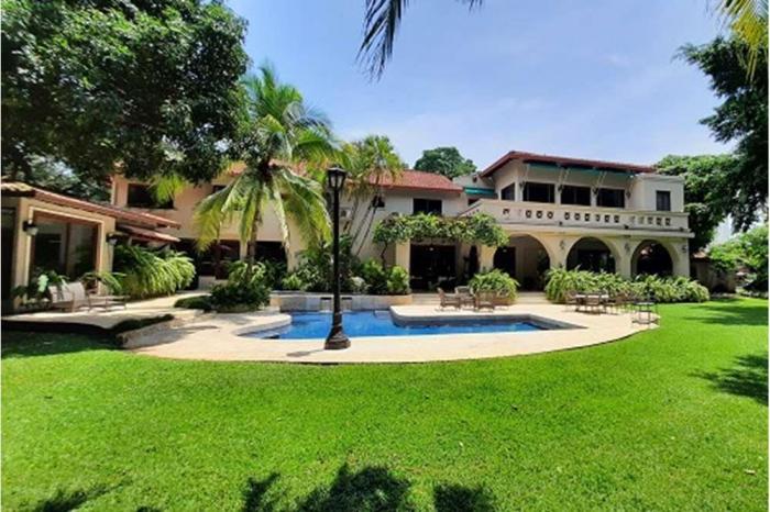 Venta de casa en altos del golfLujosa casa de 1458 mts de construcción en un terreno de 3,017 mts. la casa consta de dos plantas, 6 habitaciones con sus baños, dos salas de estar, estudio, den, amplia cocina, 2 habitaciones de servicio con baños. adicional tiene una casa de huéspedes con cocina, habitación y baño. tiene amplios jardines con iluminación, piscina, jacuzzi, tanque de agua, depósito, pisos de mármol, aire central para el área social. el vestíbulo tiene 8 mts de altura y el área social 4.5 metros de altura, pisos de mármol.