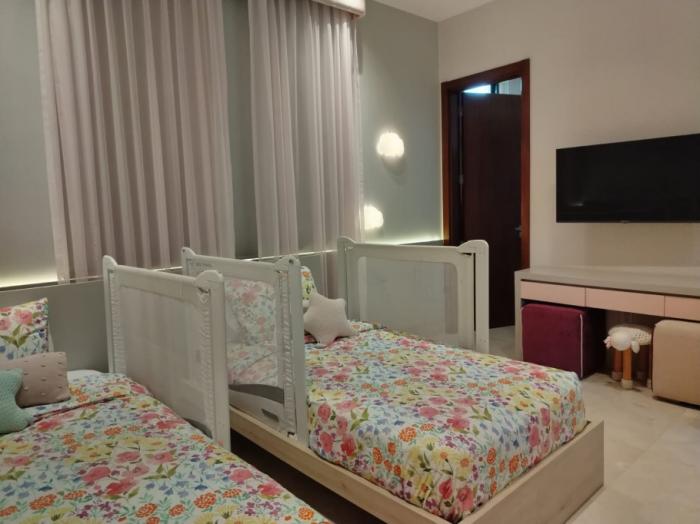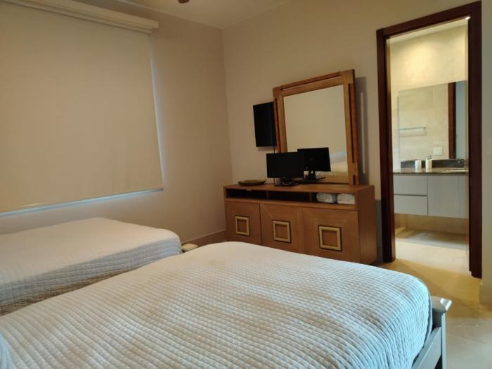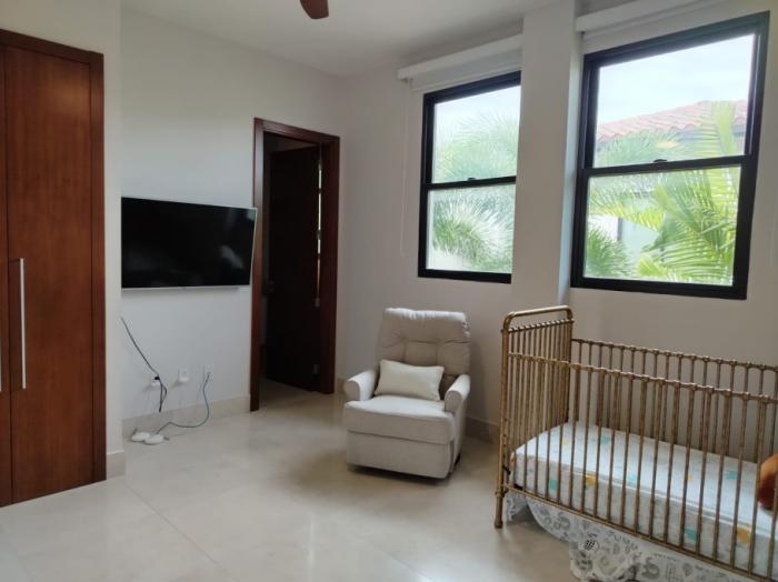 la propiedad se vende parcialmente amoblada, incluyendo los muebles de la sala familiar del piso inferior y la cama del dormitorio principal, la cual se encuentra fijada a la pared.