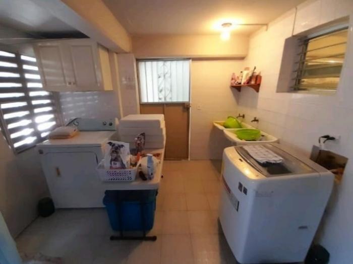 primer nivel: entrada principal, den/sala de tv, piscina con terraza y revestimientos en piedra, ducha exterior, jardín, bohío, área de lavandería con cuarto y baño de servicio (acceso directo a la cocina), cuarto de máquinas de piscina y tres estacionamientos techados.