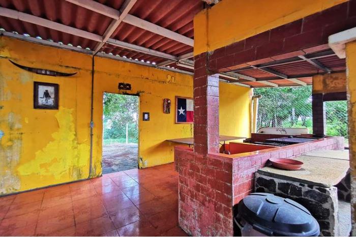 Venta de terreno con casa, la colorada, el espinoVenta de terreno con casa, la colorada, el espino, 3,367.37 m2a tan sólo una hora de ciudad de panamá y muy bien ubicado en la vía principal hacia cerro cama, en la colorada, y área de el espino, se encuentra este hermoso terreno, rodeado de naturaleza, con acceso directo desde carretera asfaltada y a sólo 20 kilómetros de la vía interamericana. el terreno está completamente cercado y cuenta con varias construcciones:la casa principal tiene 148.49 m2 de construcción, y cuenta con sala-comedor, 2 recámaras, 2 baños completos, 1 baño externo, cocina semiabierta, lavandería externa , 3 depósitos y una gran terraza techada en la parte de atrás de la vivienda. las construcciones externas miden 375.85 m2.en su parte externa, cuenta con un bohío, cocina de gran tamaño para barbacoas, 4 depósitos, una caseta para el tanque de agua, 2 estacionamientos y un tanque séptico.el terreno cuenta con numerosos árboles que dan sombra y frescor a la vivienda y está cerca de dos lagos, de los cuales, a sólo 10 kilómetros se encuentra el lago de la arenosa, donde hay un restaurante y se hacen innumerables actividades de botes y pesca.los muebles pueden venderse por separado.