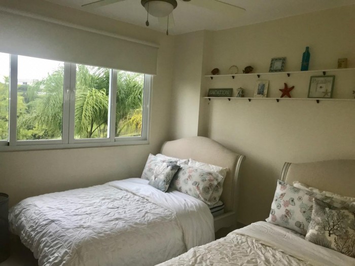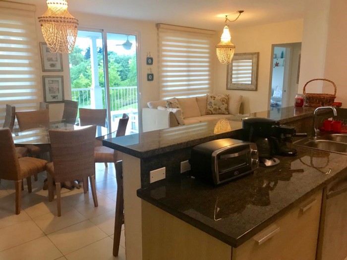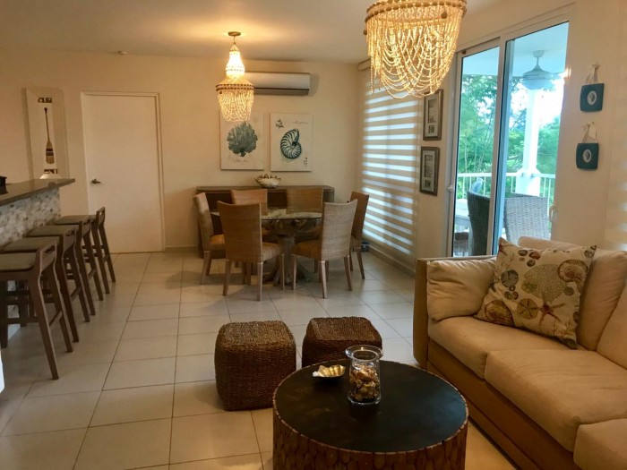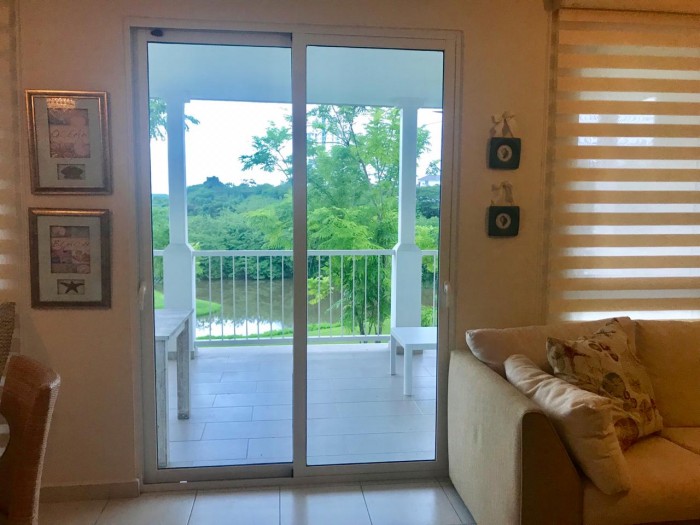 Hermoso apartamento de playa completamente amoblado, de 3 recámaras, 3 baños, sala, comedor, cocina integrada, amplio balcón con vista a la cancha de golf y lago. bijao es una comunidad playera